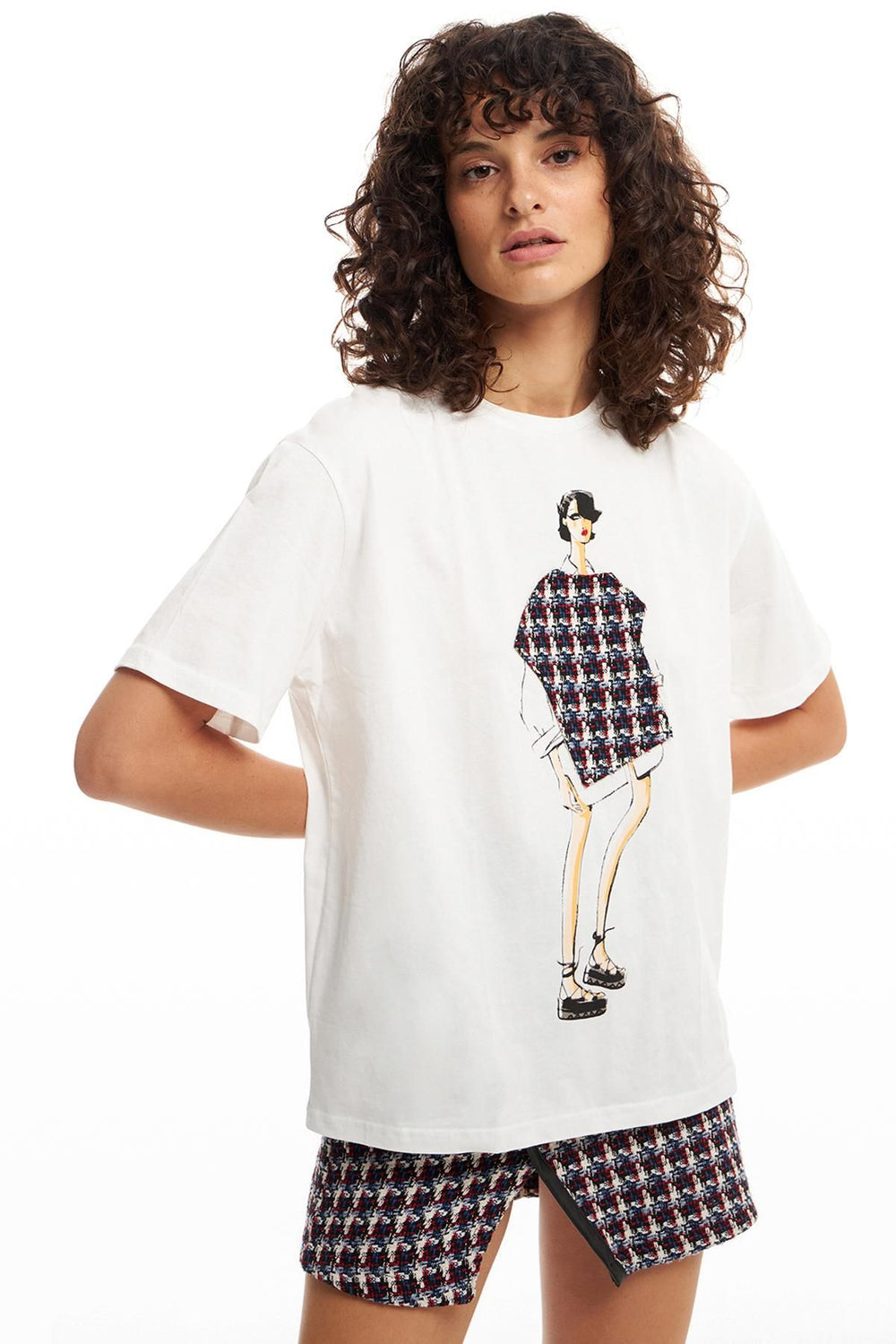 100% cotton T-shirt with a round neckline, short sleeves, oversized cut, embroidery on the front.