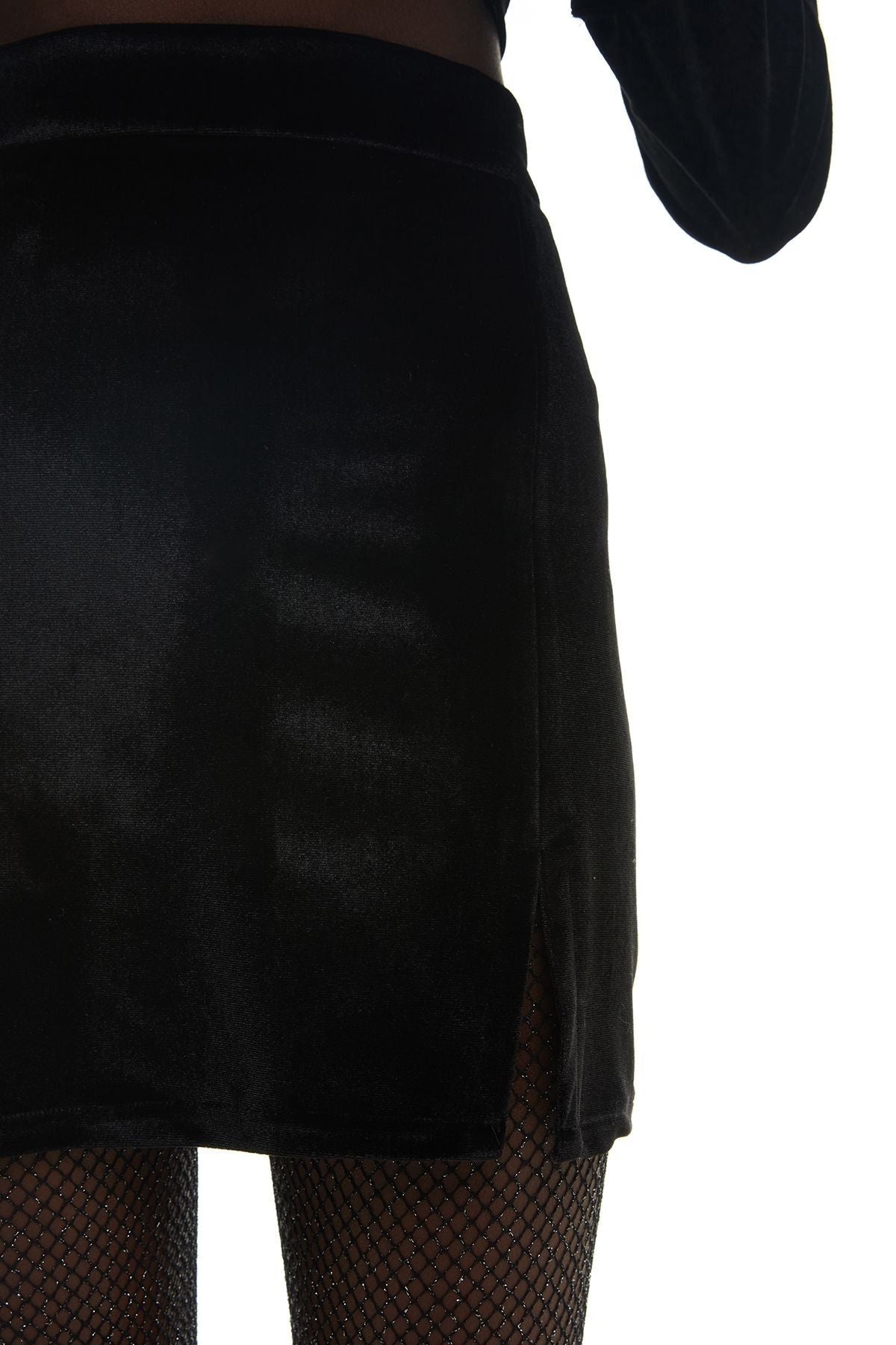 Slit Detailed Velvet Mini Skirt Black