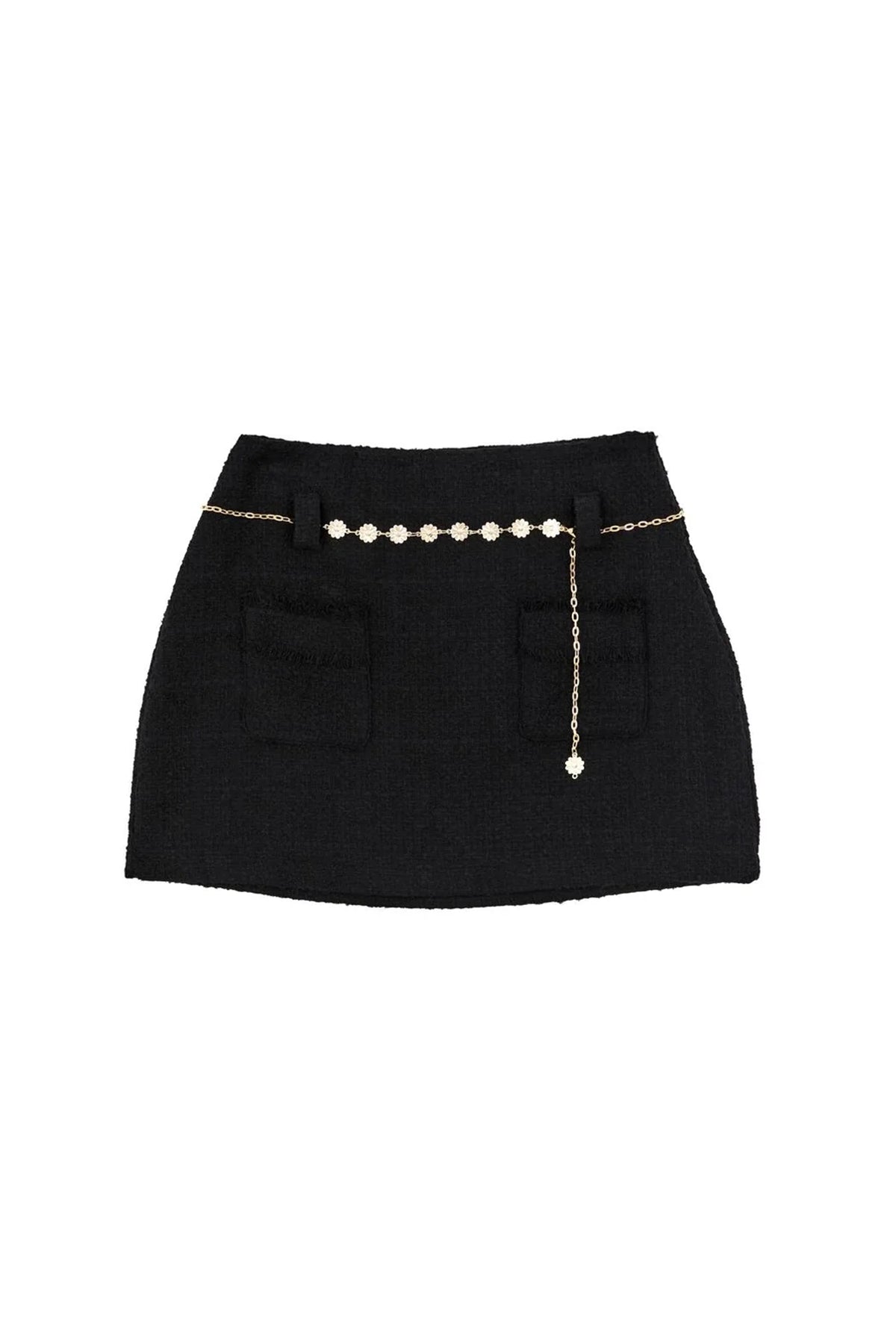 Zincir Kemerli Tüvit Mini Etek Siyah