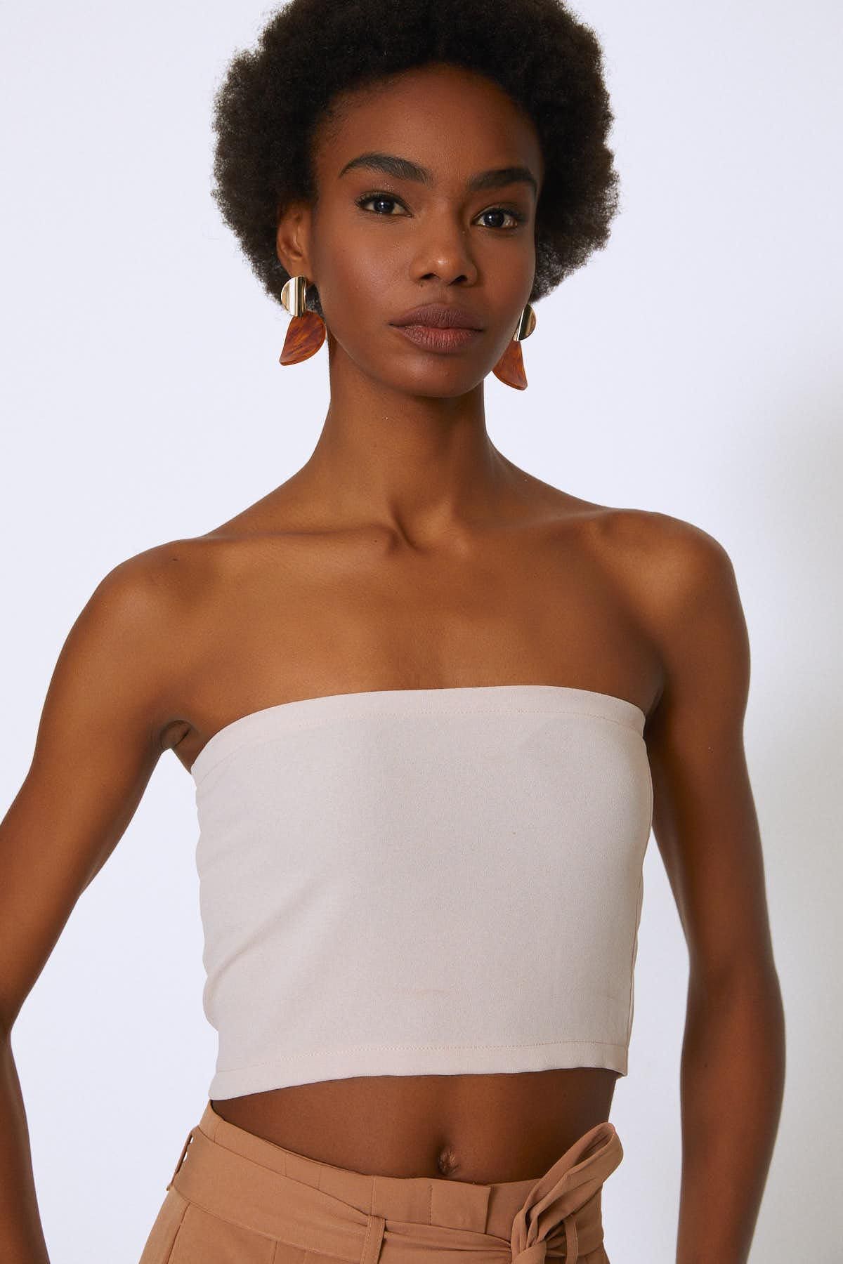 Kombinlerinin ana unsurunu oluşturacak crop bluz, yumuşak kumaşı ile konforu da beraberinde getiriyor. Tek başına kullanabileceğin gibi Quzu ceketleri ile de kombinleyebilirsin.