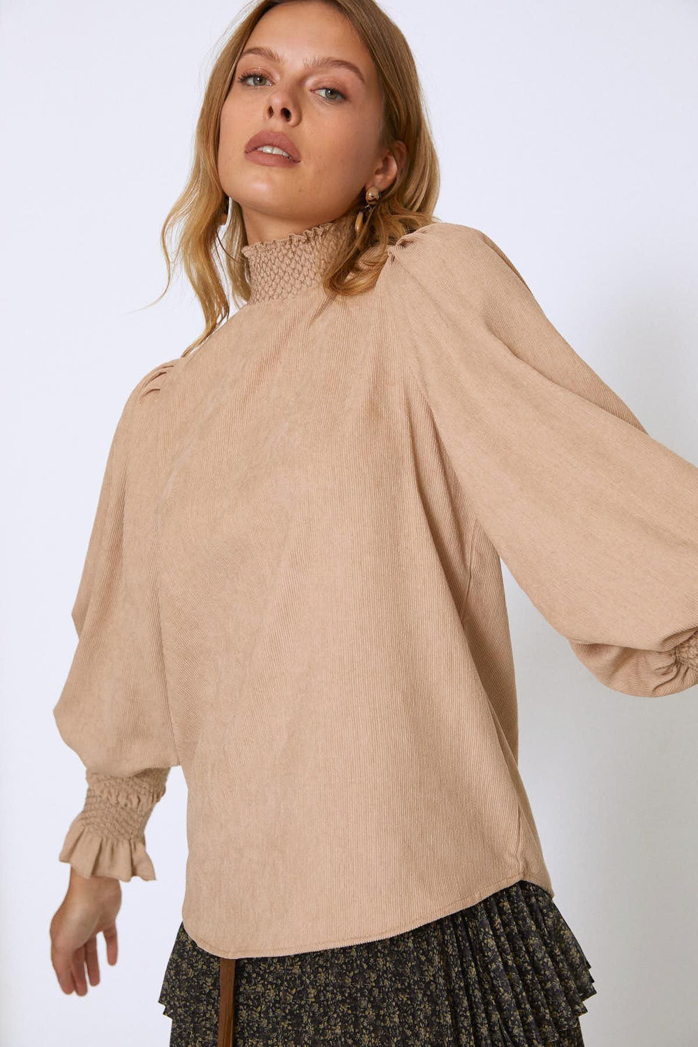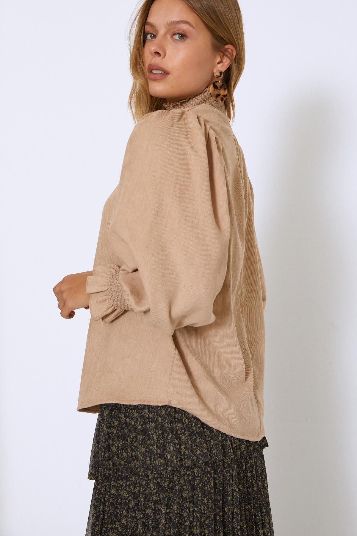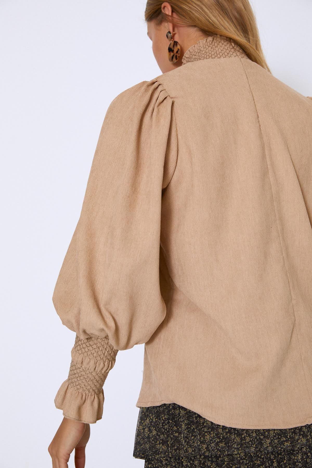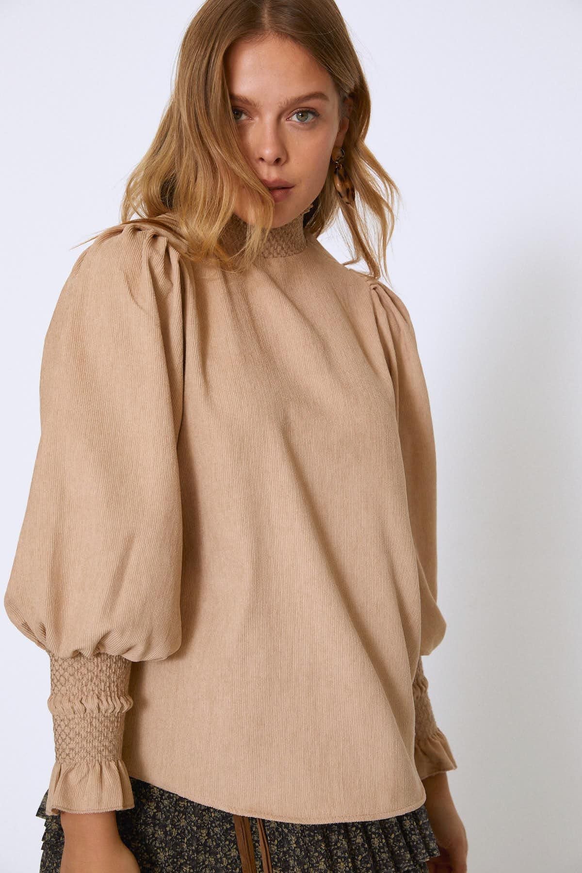 Kolları Gipeli Kadife Bluz Bej